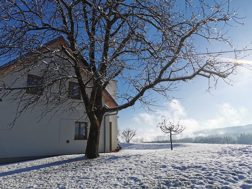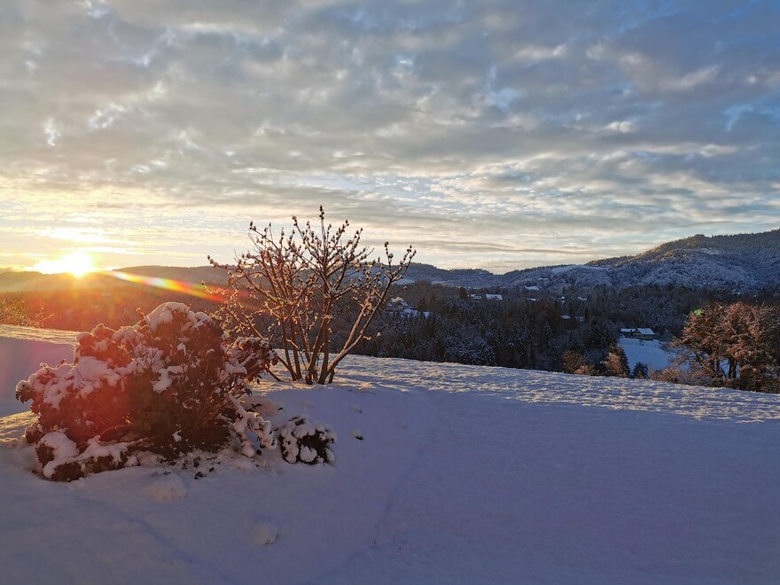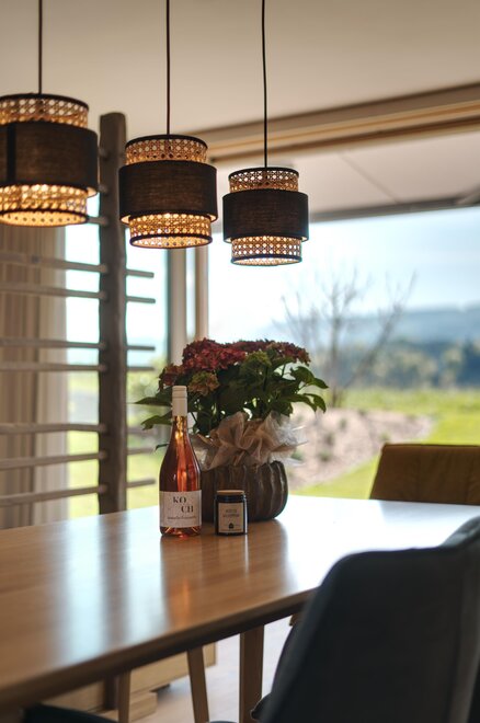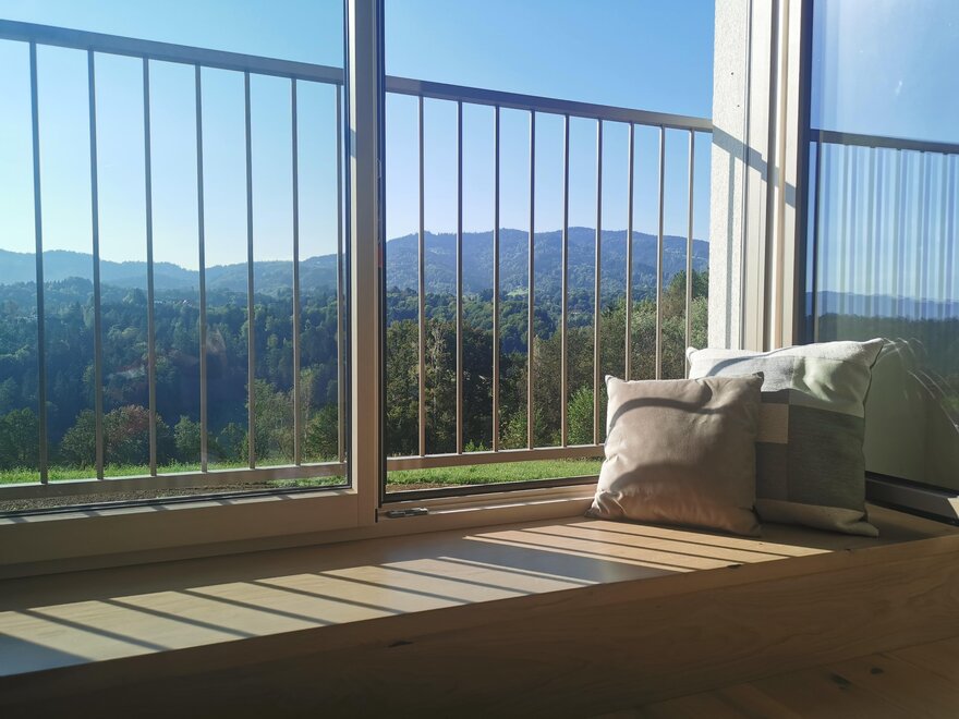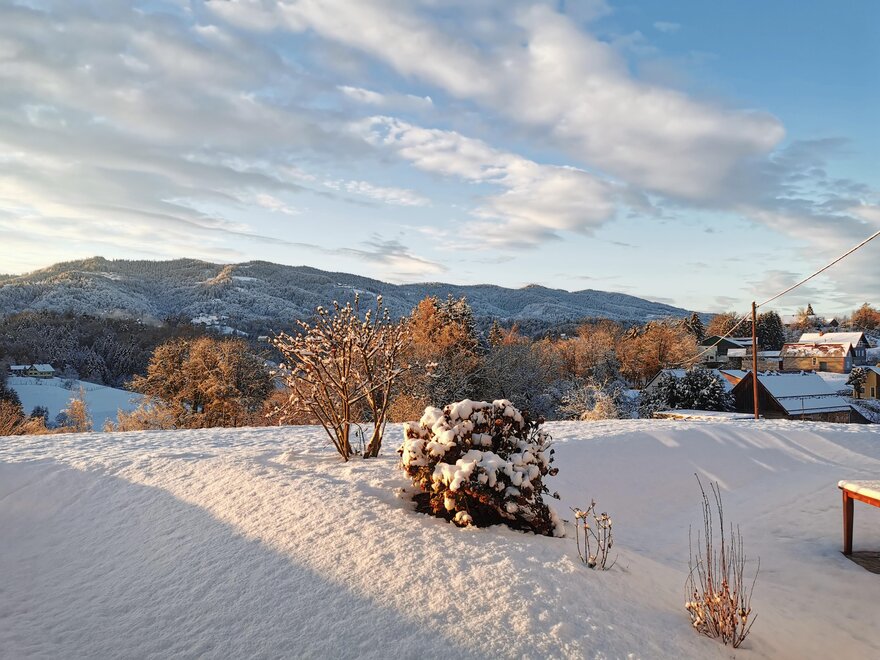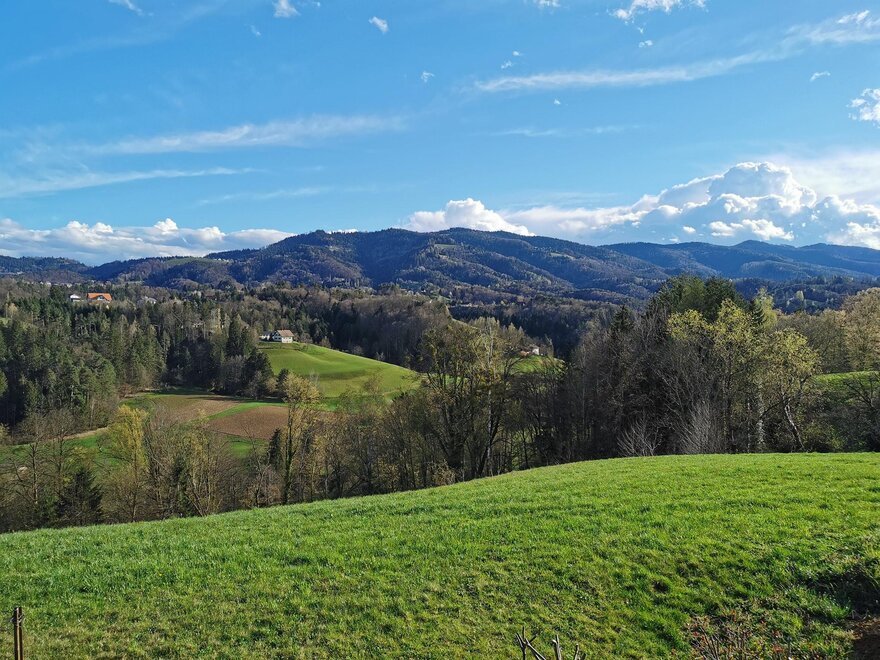 A magnificent view of the gentle hilly landscape of southern Styria with a view all the way to the Slovenian border. Away from everyday life, stress and hustle and bustle and yet important shops, pharmacies, MTB rental stations and the regional culinary highlights can be reached in approx. 5 - 15 min.