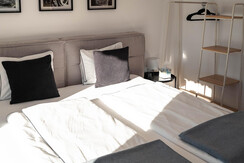 The modern bathroom offers a toilet and a spacious shower that provides a refreshing shower experience. Towels are of course provided, so you don't have to worry about anything.