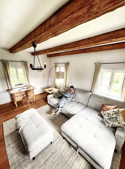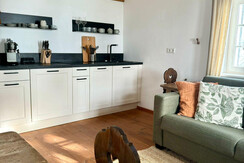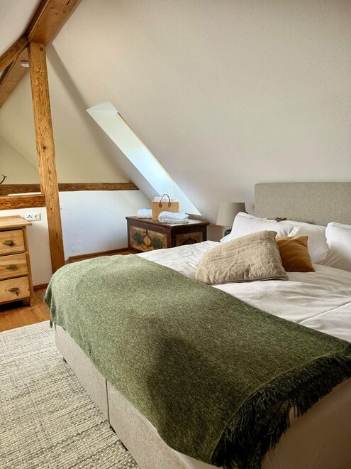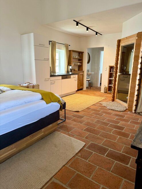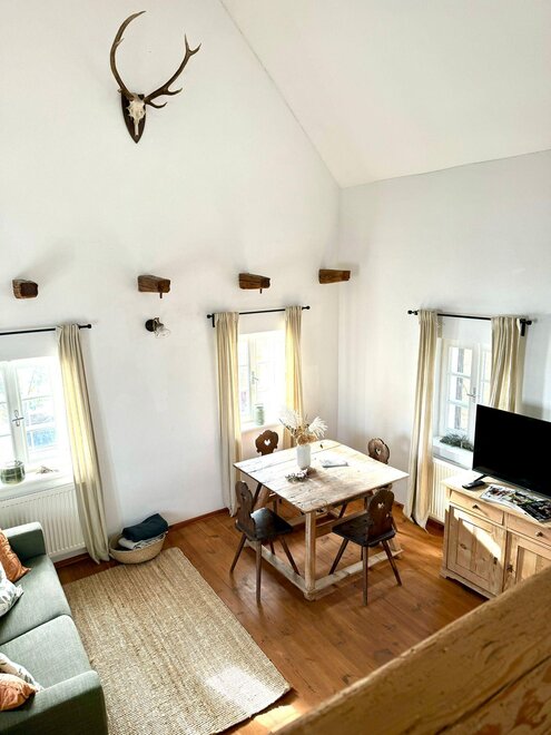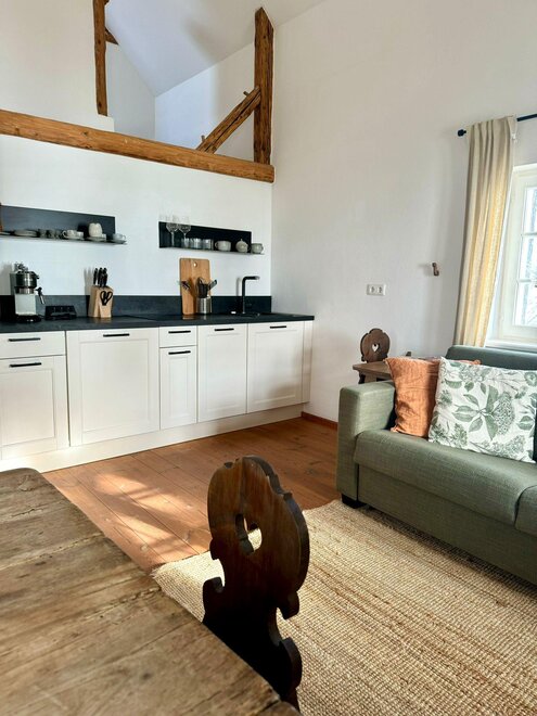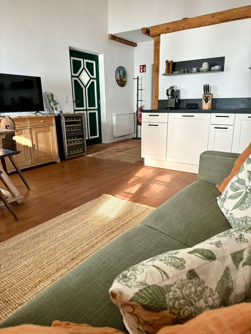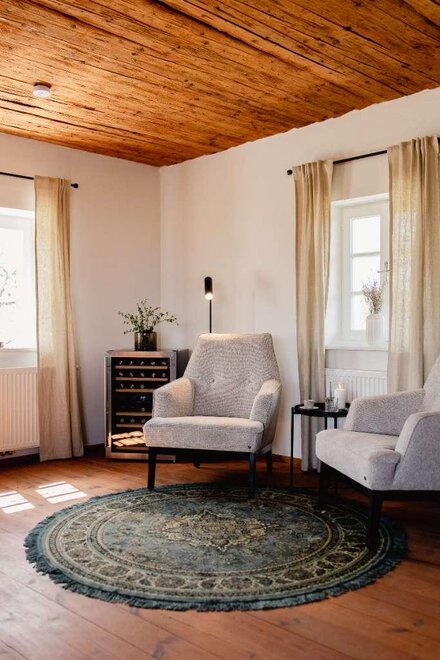 separate living room, kettle, separate bedroom/s: 2, rustic furniture, bathrobe, balcony, hairdryer, living room, washing machine, electric stove, toaster, kitchen, pay TV, bed linen available, anteroom, meadow, TV, private entry, fire extinguisher, socket close to bed, garden furniture, garden, bedding, non-smoking room/apt., separate kitchen, open foot-end of bed, whirlpool, maximum no. of pets: 2, towels available, CO detector, separate bedroom/living room, kitchen utensils, toilet laundry, use of washmachine, dishwasher, dish sink, oven, coffeemaker, quiet room/apartment, dishes available, heater, desk, terrace, wooden or parquet floor, closet, freezer compartment, tile stove, WiFi, refrigerator, smoke detector, pets permitted on request, dining room, toiletries, furniture suite, sauna, cable TV, family room/apt.