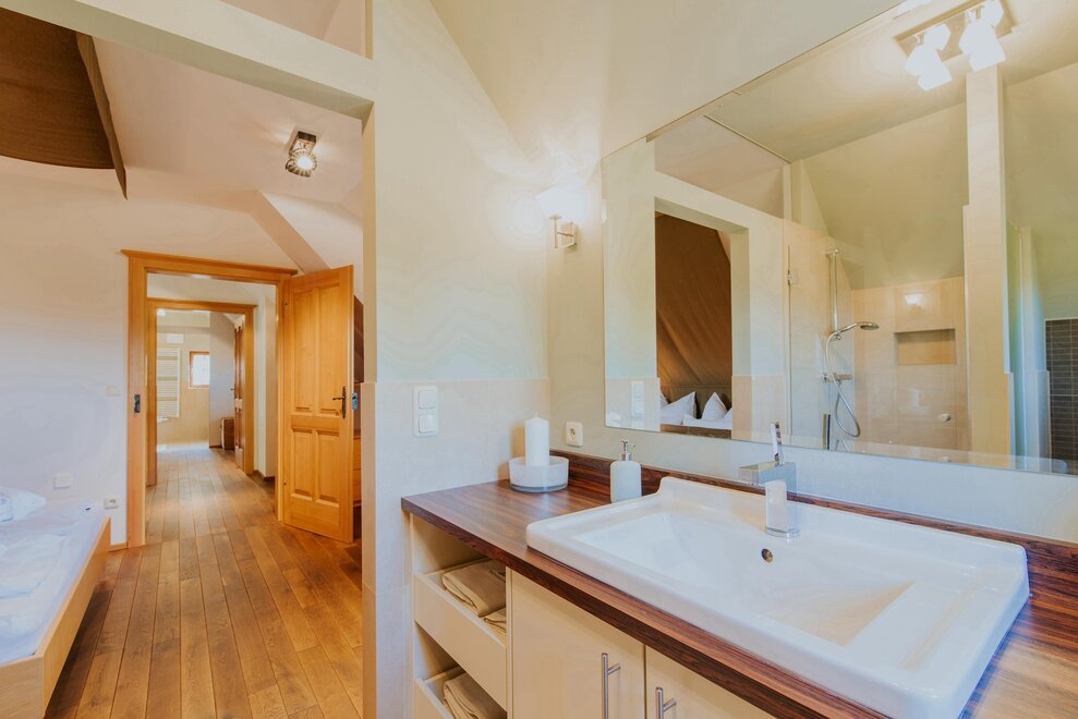 Natural stones and old bricks, as well as pleasant colors give the viewer a feeling of security and warmth. Our cottage offers two bedrooms each with private bathroom upstairs. The ground floor is a cozy living-dining kitchen.