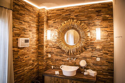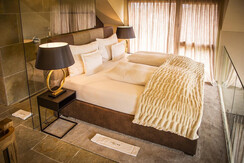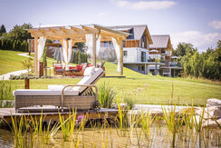 Magical moments in the Chalet Goldfuchs: 120 m² of exclusive living with an elegant interior in a casual country style. The chalet provides a fully equipped wood kitchen with rustic leather counter, a free standing copper bathtub, an open bed with king size bed as well as a private bathroom and two separate toilets. Time spent in your private spa oasis with sauna and relax loungers on the terrace will soothe and delight your soul. The spacious park facilities with 600 m² natural swimming pond snack garden, wellness oases, cozy places and open fires are completely unique in South Styria.