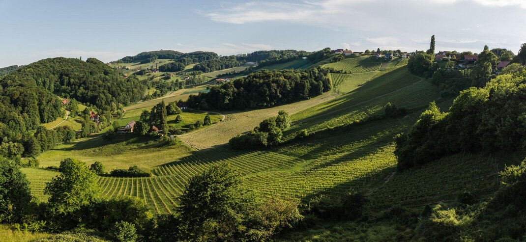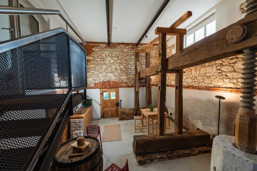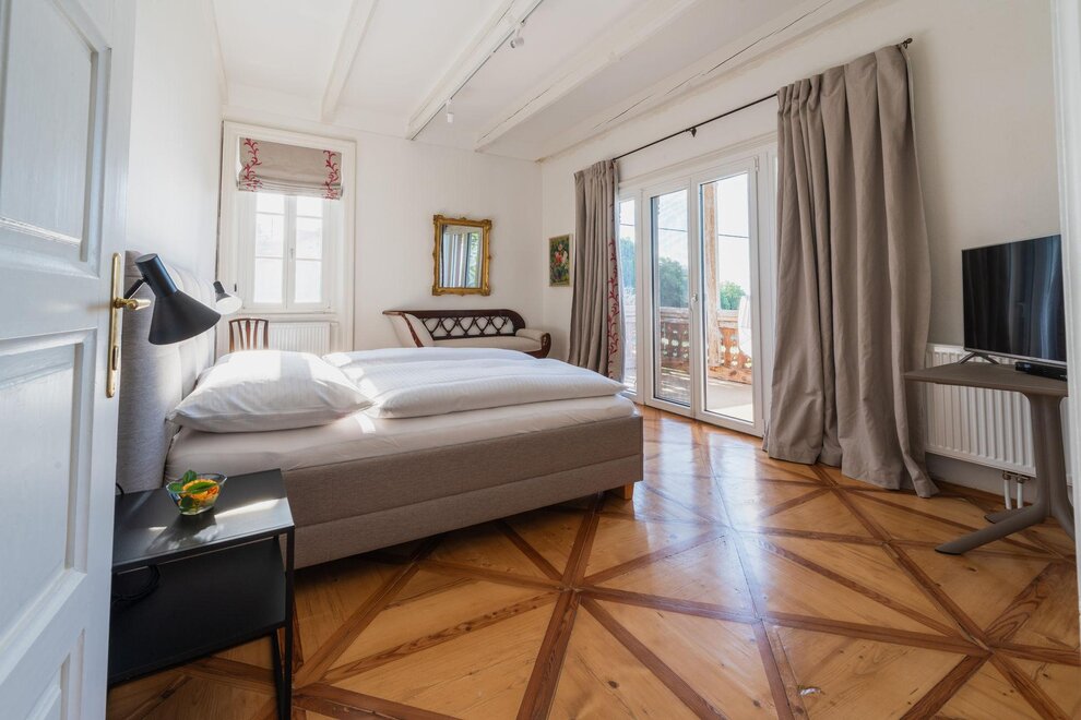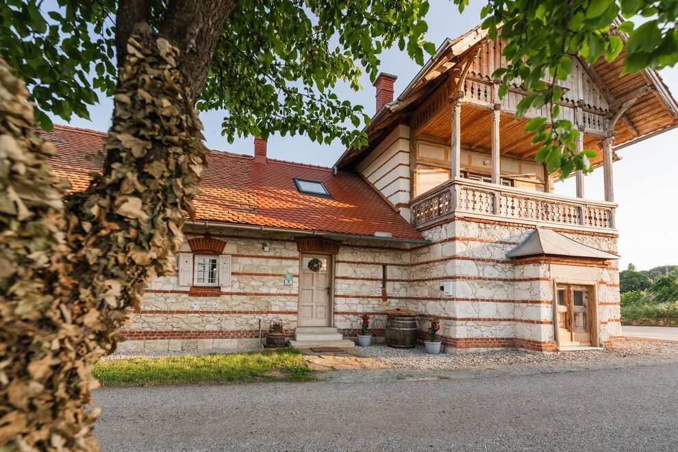 Built in 1879/80 as the manor house of the long-established citizen family Wurzinger in Strass, it rests on the limestone sediments of the primordial sea "Thetys," which existed here millions of years ago. Wine has been cultivated and pressed here for generations, and the integrated press stands as impressive evidence of this. The neighboring building that belonged to the original estate was the modest house of the winemaker (with a stable and hayloft) built at the same time. The owners themselves paid far more attention to the architecture and furnishings of their estate. In the region, the stone construction, interrupted by red brick bands, is unique.