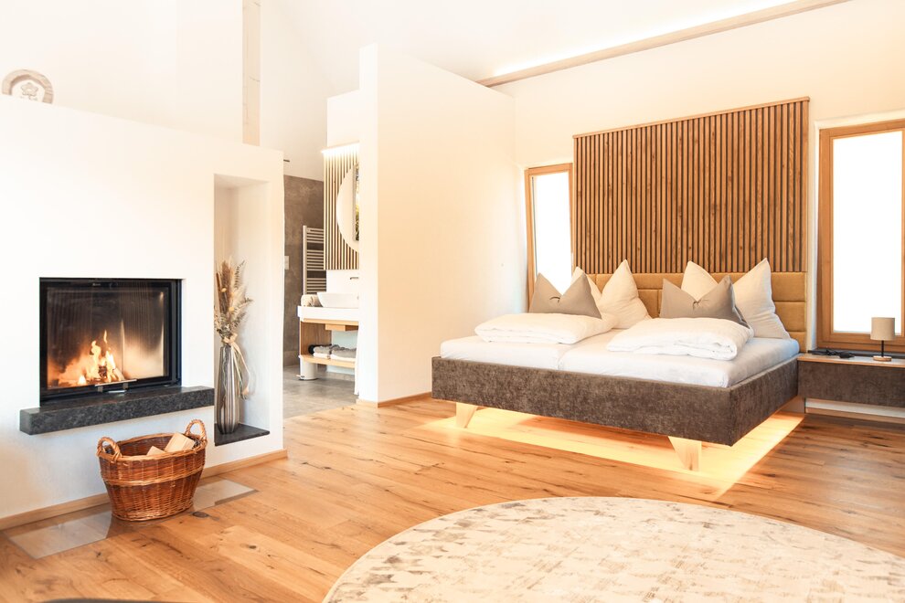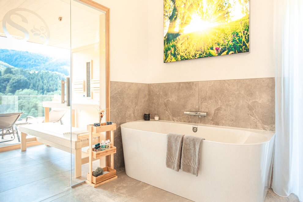 An oiled oak floor, underfloor heating, the blazing fireplace and high-quality wooden furniture contribute to the cosiness and comfort in Jana Stöckl. A panoramic sauna and a free-standing bathtub ensure pure relaxation, warmth and togetherness in the house. Refined details make the house something special. A highlight for every hobby cook is the fully equipped kitchen, where you can spoil your loved ones with a home-cooked culinary delight with a beautiful view. Air conditioning ensures pleasant temperatures on hot summer days.