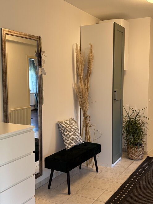 closet, garden furniture, separate bedroom/living room, kitchen and table linen, freezer compartment, kitchen utensils, essentials (towels, bed linen, soap, toilet tissue), dishwasher, vent hood, use of washmachine, no pets allowed, toaster, hairdryer, refrigerators available, anteroom, kitchen, coffeemaker, open plan kitchen/living room, towels available, living room, no carpet, electric stove, separate bedroom/s: 1, kettle, whirlpool, wooden or parquet floor, garden, good as new room/apt., dish sink, heater, dishes available, oven, quiet room/apartment, TV, non-smoking room/apt., dryer, refrigerator, modern furnishing, bed linen available, private entry, furniture suite, microwave
