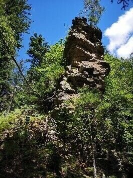 Here you continue straight on through a pasture gate, pass the abandoned Klug vulgo Vastlhansl farm and then hike up a forest path to Sporiroaofen. Already here, larger rock formations arouse your interest. Once you arrive at your destination, it takes about an hour.