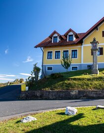 Idyllically situated is the Buschenschank of the Hakl family in Sichauf near St. Anna am Aigen. Directly at the "Three-Country Corner" of southeastern Styria, southern Burgenland, and Slovenia. Oh yes, and in a few minutes, one can even reach Hungary. Truly a border-crosser. The food, juices, and wines available are borderingly great as well. The Hakl family serves only what they themselves enjoy eating. The meat products come entirely from their own pigs. The meat is refined according to old recipes and processed into cured meats, cumin roast, Verhackertes, and much more. But not only the meat products are homemade—the farmer's bread is also always freshly baked by the lady of the house in the old bread oven.