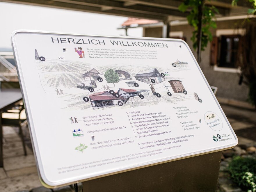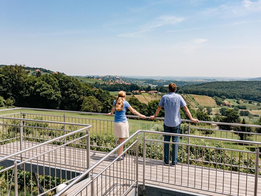 Like a small gem nestled between the green hills of the Styrian Volcano Land in St. Anna am Aigen, the Triebl winery boasts an expansive panoramic terrace from which you can enjoy the endless landscape. As winemakers, we will then guide you through the production area, where you will learn about the grape harvest and pressing in connection with the vineyards leading to the wine cellar. Top attractions for wine lovers!