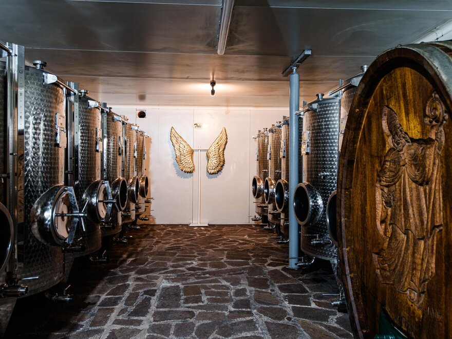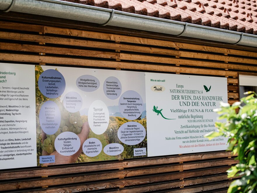 When you then ascend the grand staircase from the wine cellar, your visit will conclude on our panoramic terrace with an unforgettable tasting of Triebl wines. It is not a conventional exhibition; rather, you experience the operation with real production steps alongside real people—everything here is authentic.