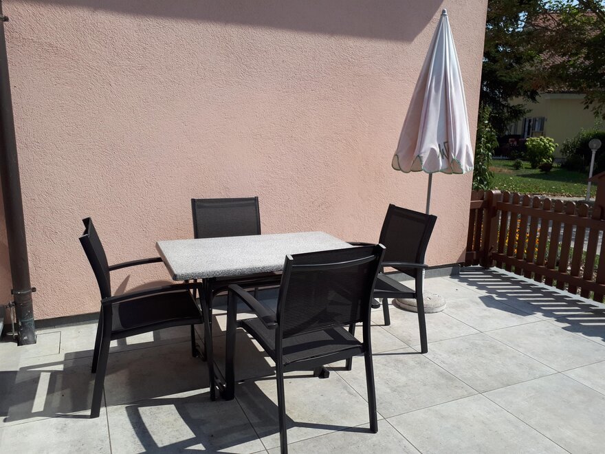 towels available, tiled or marmor floor, freezer compartment, toaster, bed linen available, wood oven, safe, walk-in closet, kitchen utensils, terrace, washing machine, refrigerator, fire extinguisher, non-smoking room/apt., kettle, furniture suite, WiFi, satellite TV, weekly cleaning, dishwasher, combined bedroom/living room, dishes available, separate bedroom/s: 2, quiet room/apartment, garden furniture, essentials (towels, bed linen, soap, toilet tissue), telephone, microwave, private entry, anteroom, toiletries, dining room, central heating, open foot-end of bed, kitchen, heater, no pets allowed, winter garden, electric stove, internet connection available, TV, socket close to bed, bedding, open plan kitchen/living room, living room, wooden or parquet floor, hairdryer, dish sink, high chair