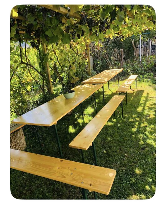 There is a large garden with a vine arbor where you can barbecue, play or celebrate. The garden offers plenty of space for all kinds of activities and invites you to spend cozy evenings outdoors.
