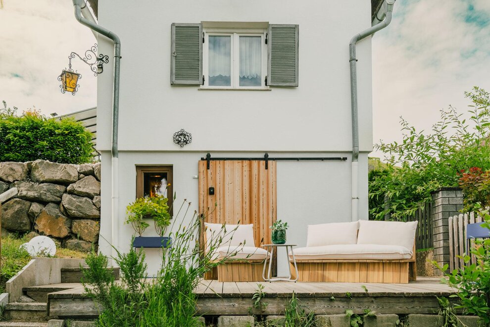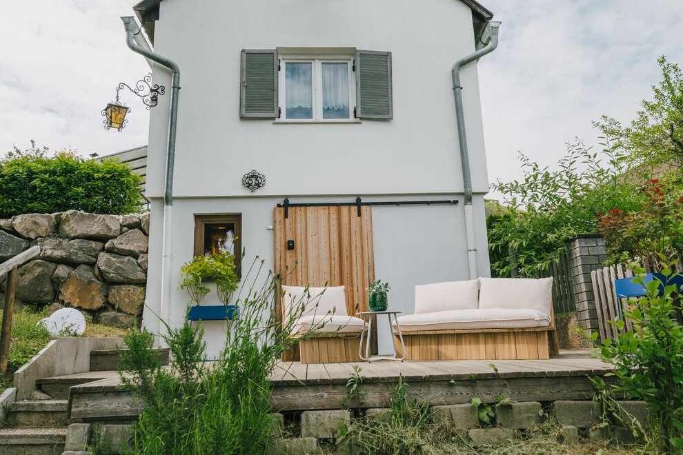 - For a booking of 1-2 people, the Kellerstöckl (1 double bed, kitchen, living-dining area, bathroom, terrace, garden) is automatically booked. For a booking of 3-4 people, the Gewölbe Studio (1 sofa bed 160x200cm, bathroom, coffee-tea bar, terrace) is automatically added as a second separate accommodation unit.