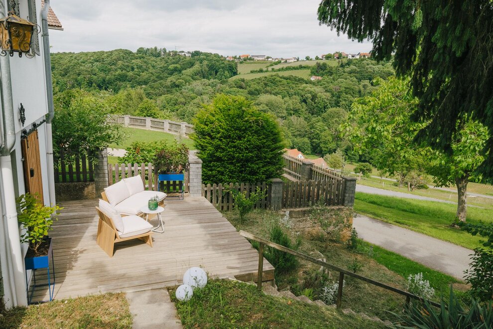 On the spacious terrace with a view of the breathtakingly beautiful valley, you can really enjoy balmy summer nights with a delicious glass of Styrian wine.