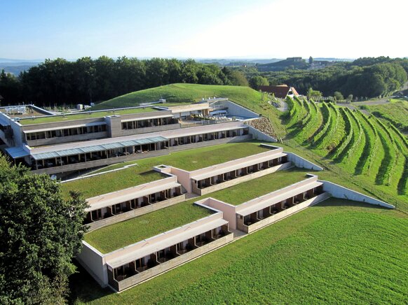 Das Genusshotel Riegersburg wurde auf harmonische Weise in den traditionsreichen Weinberg Starzenberg eingebettet. Über vier Etagen schmiegt sich das Bauwerk in den Hang und bietet so einen prachtvollen Blick auf die Riegersburg und die Weiten des steirischen Vulkanlands. Mit 44 geräumige Zimmer mit einer Fläche von je 30 m², zwei Suiten mit je 60 m², bietet das Hotel einen geräumigen und komfortablen Rückzugsort am Fuße der Riegersburg.