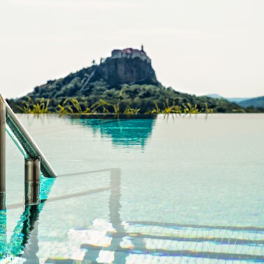 Für Erholung und Entspannung sorgt die Wohlfühllandschaft mit Finnischer Sauna, Aromadampfsauna, Ruhebereich und beheiztem Außenpool mit Panorama-Liegeterrasse.