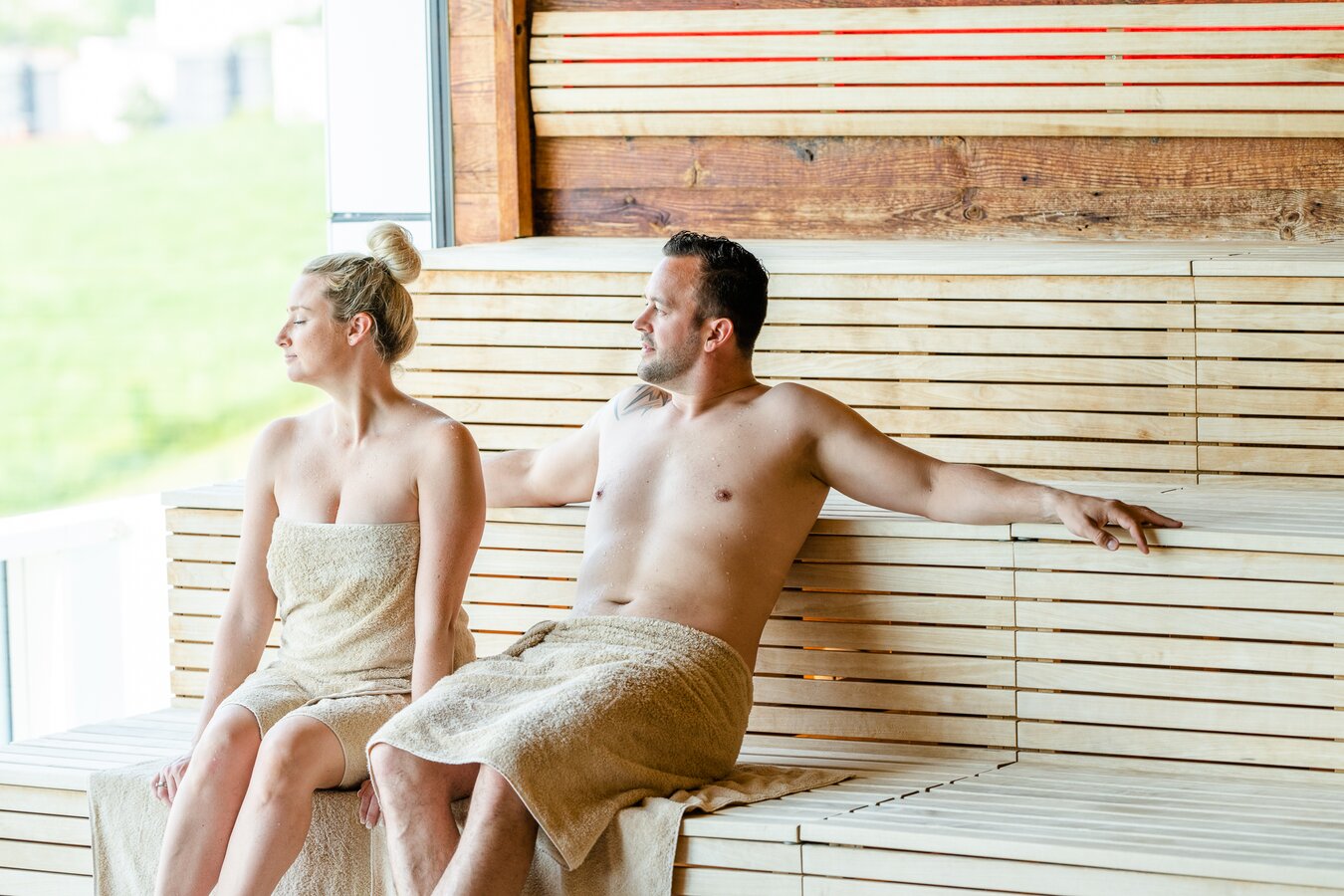 Saunalandschaft, Tropenwald, Sonnenlichtturm, Dampfgrotte und der Wasserfall mit Kieselbucht runden das Wellness-Angebot ab.