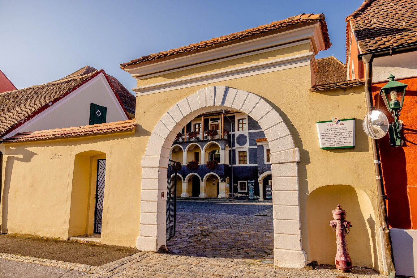 Start und 1 Station ist die Pfeilburg, folgen sie der Markierung am Boden (Malteserkreuz) auf den Kavalier hinter der Pfeilburg. Weiter geht es über die Wallstraße zum Aussichtspunkt Kurtine, weiter über die Wallstraße zum Eurospar Parkplatz wo sich die Ungarbastei und der erste Bunker befindet (der Bunker ist nur in Verbindung mit einer Führung zu besichtigen) folgen sie bis zur Kreuzung und biegen links in die Hauptstraße, vorbei an der Eisdiele zum Cityparkplatz wo sich die Aussichstplattform befindet. Gehen Sie wieder zurück und queren die Straße zum ehemaligen Ungartor, gehen Sie rechts Richtung Stadt Zug Platz und links in die Burgenlandstraße, dort biegen Sie links in der Park des JUFA Gästehauses, an der linken Seite befindet sich nun die Eisenbrücke welche Sie mit dem alten Schloss am Stein verbindet. Die Treppe führt sie zur Schlossbastei mit neu angelegtem Rosengarten. Folgen Sie dem Weg in die Feistritzgasse. Links weitergehen bis sie an der Feistritz zu einem grünen Eisentor gelangen. Öffnen Sie dieses und folgen auf dem unbefestigen Feistritzwall den Pfad. Am Ende führt Sie eine Treppe hoch in die Innestadt. Queren Sie die Straße zum Hauptplatz/ Mariensäule. Weiter geht es durch die Theatergasse, am Ende rechts abbiegen in die Santnergasse zur Mühlbastei. Gehen Sie weiter links zum Grazertor. Queren Sie die Straße beim Tor in den Wallgraben. Am Ende gelangen Sie wieder zur Wallstraße welche Sie links folgen und zum Ausgangspunkt der Pfeilburg gelangen.