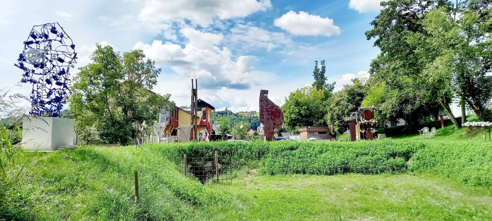 Vom Gasthof Malerwinkl geht es bergauf zum Kunsthochsitz. Genießen wir Kunst und das herrliche Panorama: Entlang des Bergkammes haben wir eine herrliche Aussicht auf Hatzendorf. Weiter geht’s durch den Wald nach Unterhatzendorf, wo eine Optische Scheibe die Sinne verwandelt. Drehen wir ruhig die Scheibe im und gegen den Uhrzeigersinn. Weiter geht es zum Rastplatz Hühnergeflüster und zur Steckeisenblume. Der Weg führt nun entlang von Wiesen und Äckern, vorbei am Apfelplatz nach Hatzendorf retour, wo die Skulptur Umarmung wartet. Zum Abschluss wartet noch der Weltengarten beim Bahnhof.