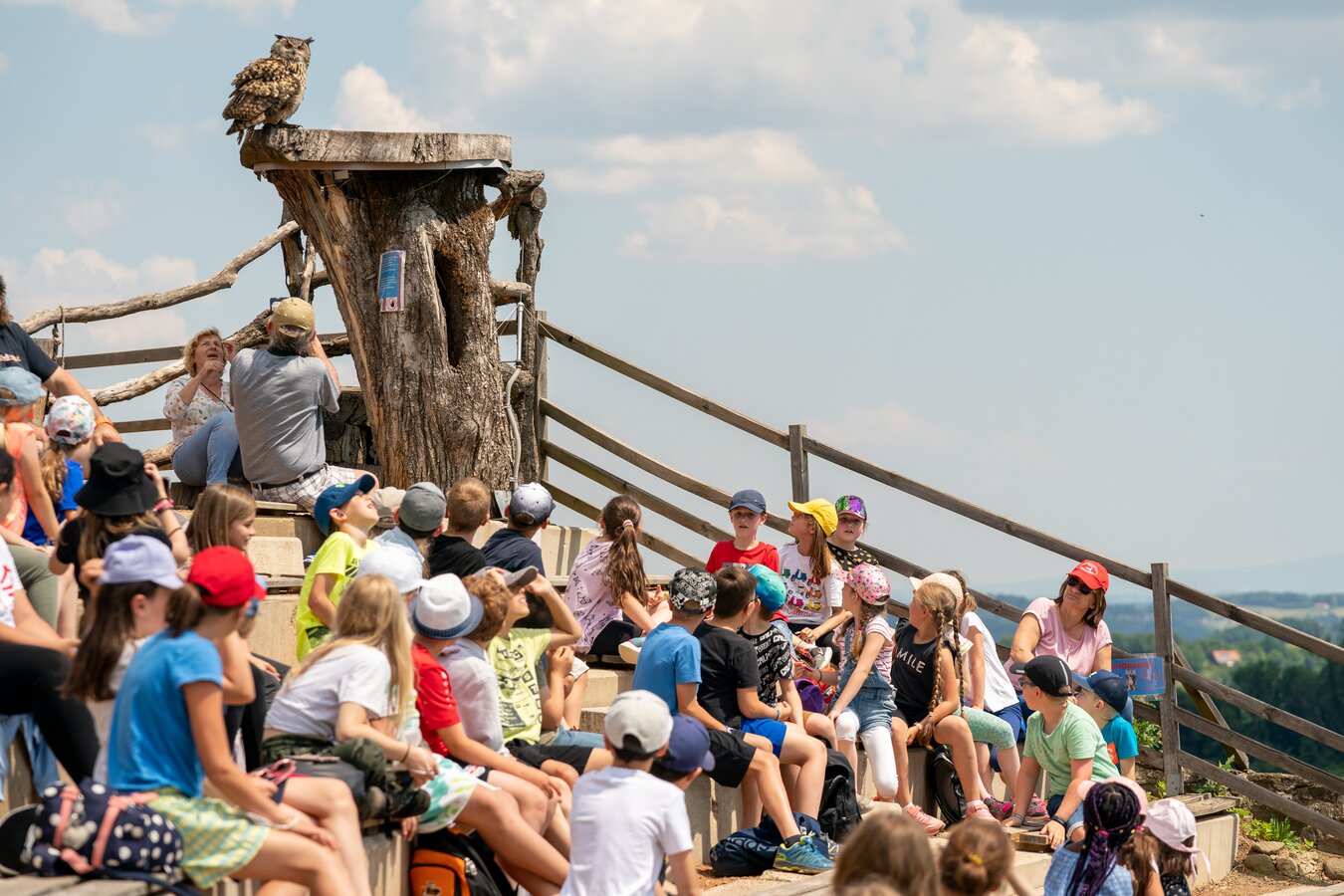 Die Flugvorführung auf der Greifvogelwarte war der nächste Höhepunkt des Tages! Die Schüler und Schülerinnen haben gut aufgepasst und sich viele Namen der Tiere und Einzelheiten aus den Erzählungen der Falkner gemerkt.