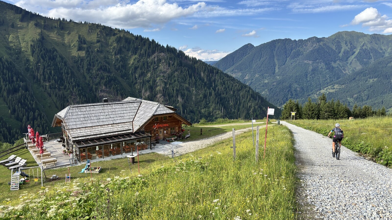 Starting from the centre of Donnersbachwald, this route leads up to the Vordere Mörsbachalm with a stop for refreshments and e-bike recharging possibility. From there, the route continues at a leisurely pace to the Hintere Mörsbachalm, where another Bike & Hike station invites you to go hiking. The way back is via the Oxenalm and then back downhill to the starting point.